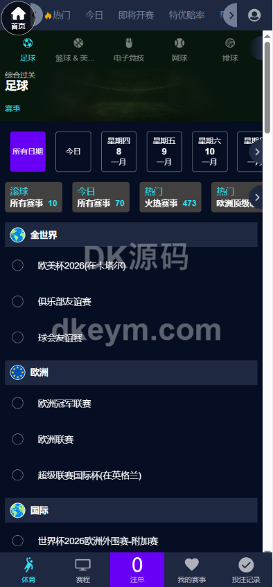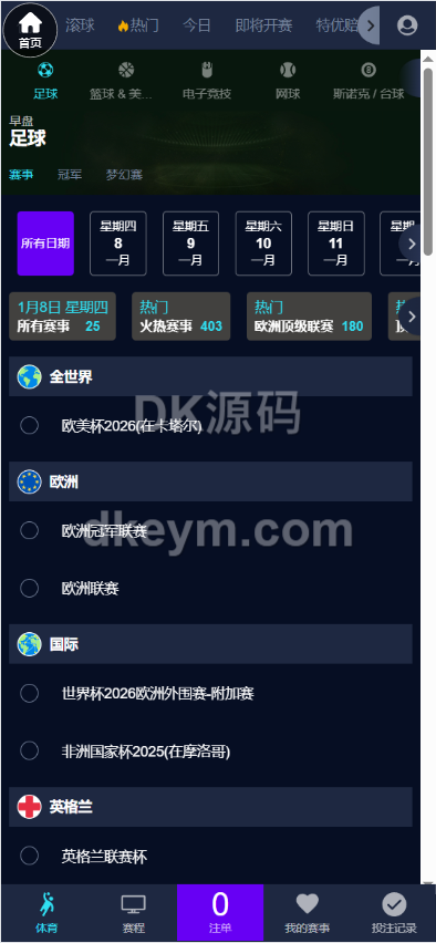 2026最新皇冠信用盘源码/足球篮球体育盘/皇冠体育源码/1:1复刻官网版本 足球,篮球,网球,排球,电竞,羽毛球,乒乓球,台球,棒球,其他体育类,信用盘口,无需买分抽水,自营模式,可改注单,对调,控制单注无效各种功能。已接入当前热门体育赛事,世界杯赛事等体育游戏。 和官方网站一模一样,1:1精仿版本,已接入当前热门体育赛事,世界杯赛事等体育游戏。